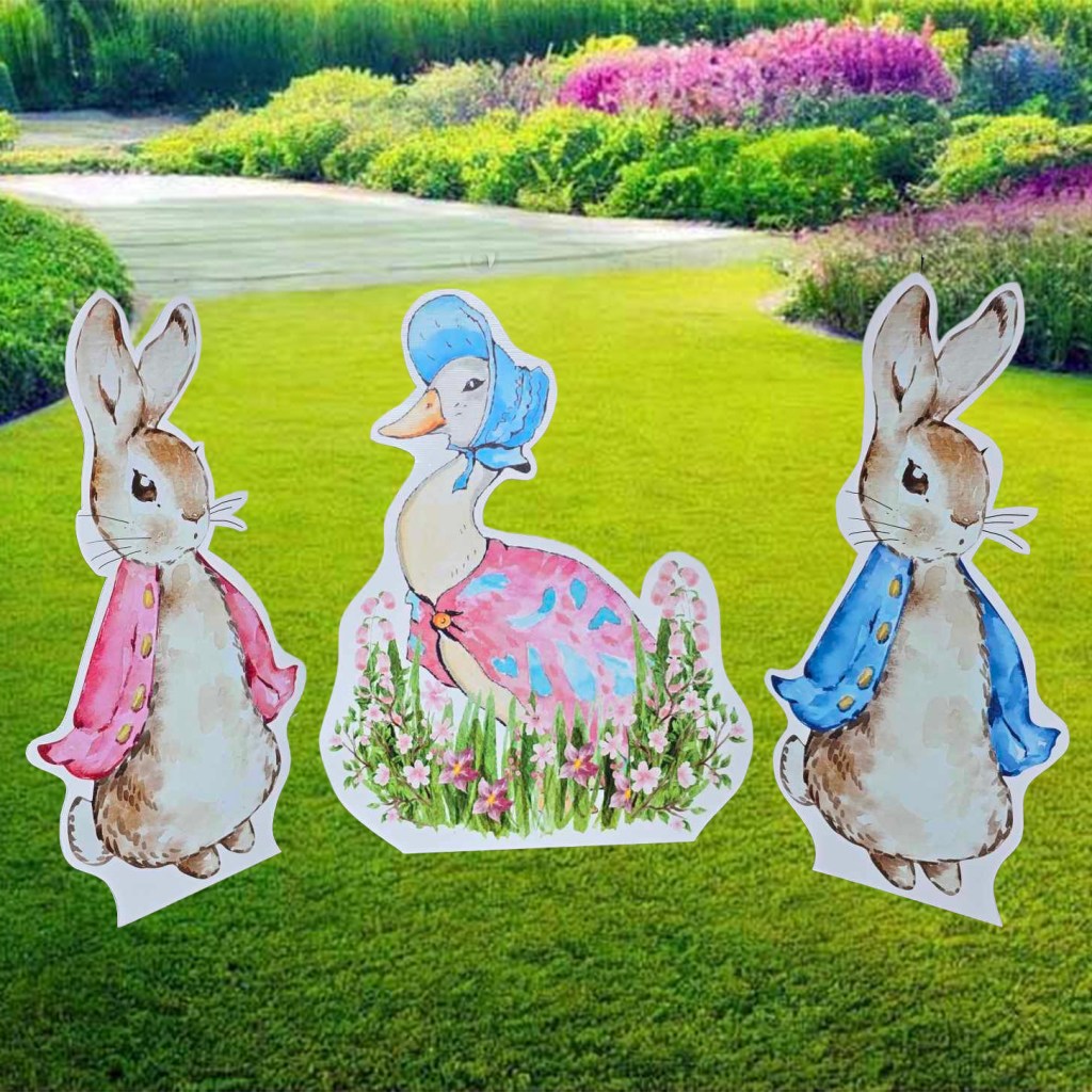 Peter Rabbit style free standing cut outs now available.